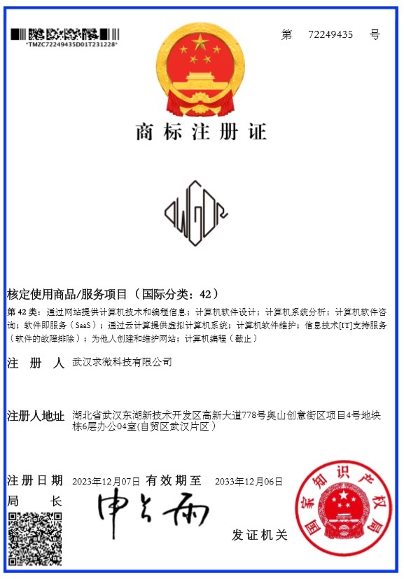 QWGDR文字商标和图形商标第42类、第35类、第9类注册通过